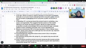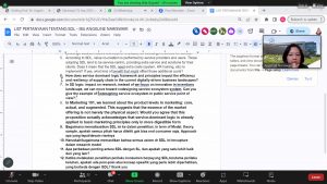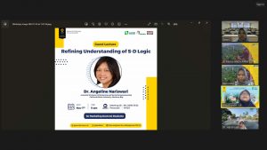 Kuliah tamu membahas mengenai “Service-Dominant Logic: Refining Understanding”. Presentasi diawali dengan perkenalan Dr. Angeline yang Pendidikan terakhirnya merupakan lulusan program Doktor bidang Marketing di Shidler College of Businesss, University of Hawaii at Manoa.