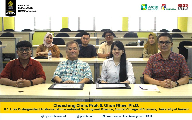 Coaching Clinic untuk Mahasiswa S3 PPIM dari Universitas luar negeri] Program Pascasarjana Ilmu Manajemen (PPIM) Fakultas Ekonomi dan Bisnis Universitas Indonesia telah melaksanakan Coaching Clinic untuk Mahasiswa S3 Keuangan/Perbankan dalam rangka memberikan review terhadap proposal disertasi atau paper sebanyak 6 mahasiswa. Pada hari Selasa, 24 Oktober 2023 Coaching Clinic diberikan oleh mengundang Prof. S. Ghon...Read More