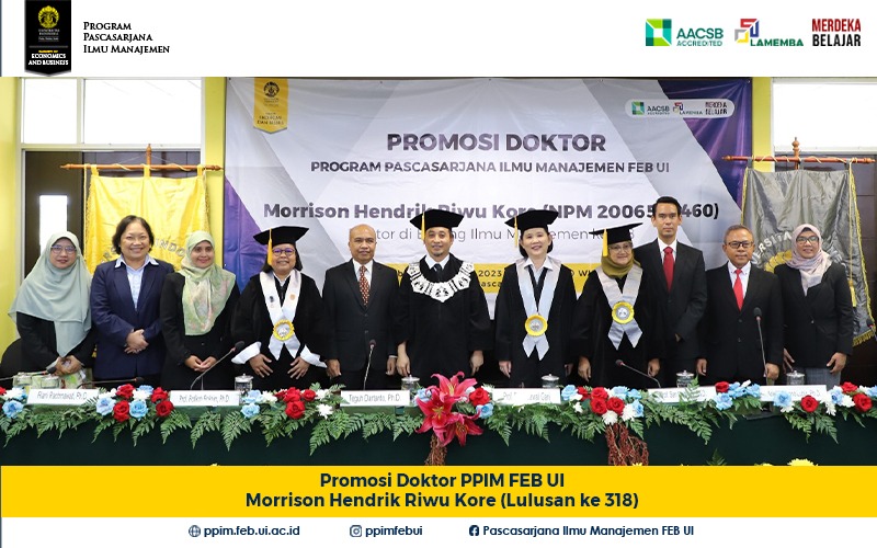 Selamat Atas Pengukuhan Doktor yang ke-318 untuk Morrison Hendrik Riwu Kore yang merupakan Mahasiswa S3 Manajemen Stratejik angkatan 2020 di Program Pascasarjana Ilmu Manajemen FEB UI. Promosi S3 telah dilaksanakan pada hari Rabu, 8 November 2023 Pukul 10.00 – 12.30 WIB di Ruang 401-403, Lantai 4, Gedung Pascasarjana FEB UI, Kampus UI Depok. Judul Disertasi...Read More